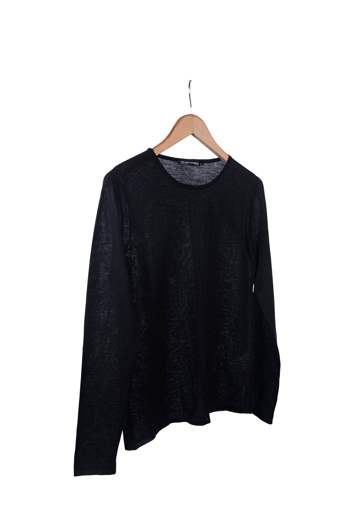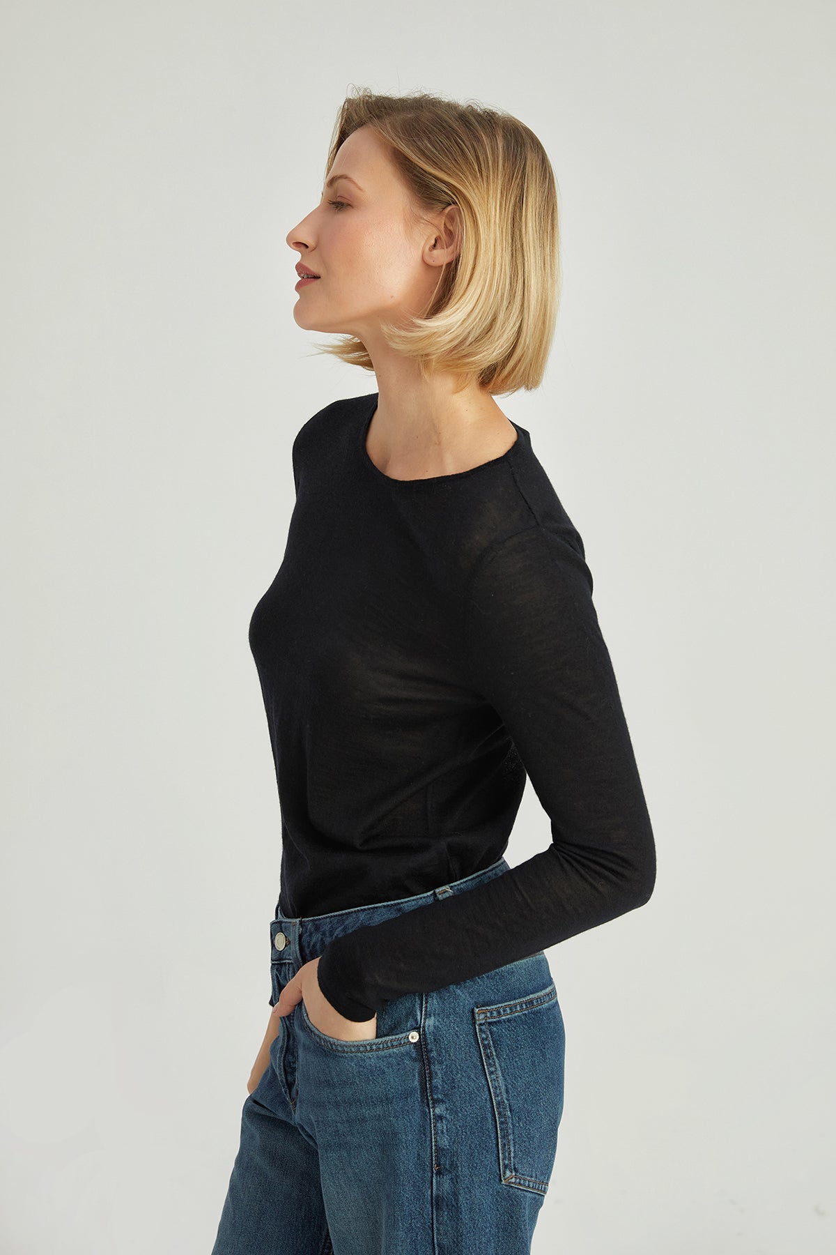 Siyah Ultralight Saf Kaşmir Bisiklet Yaka Triko