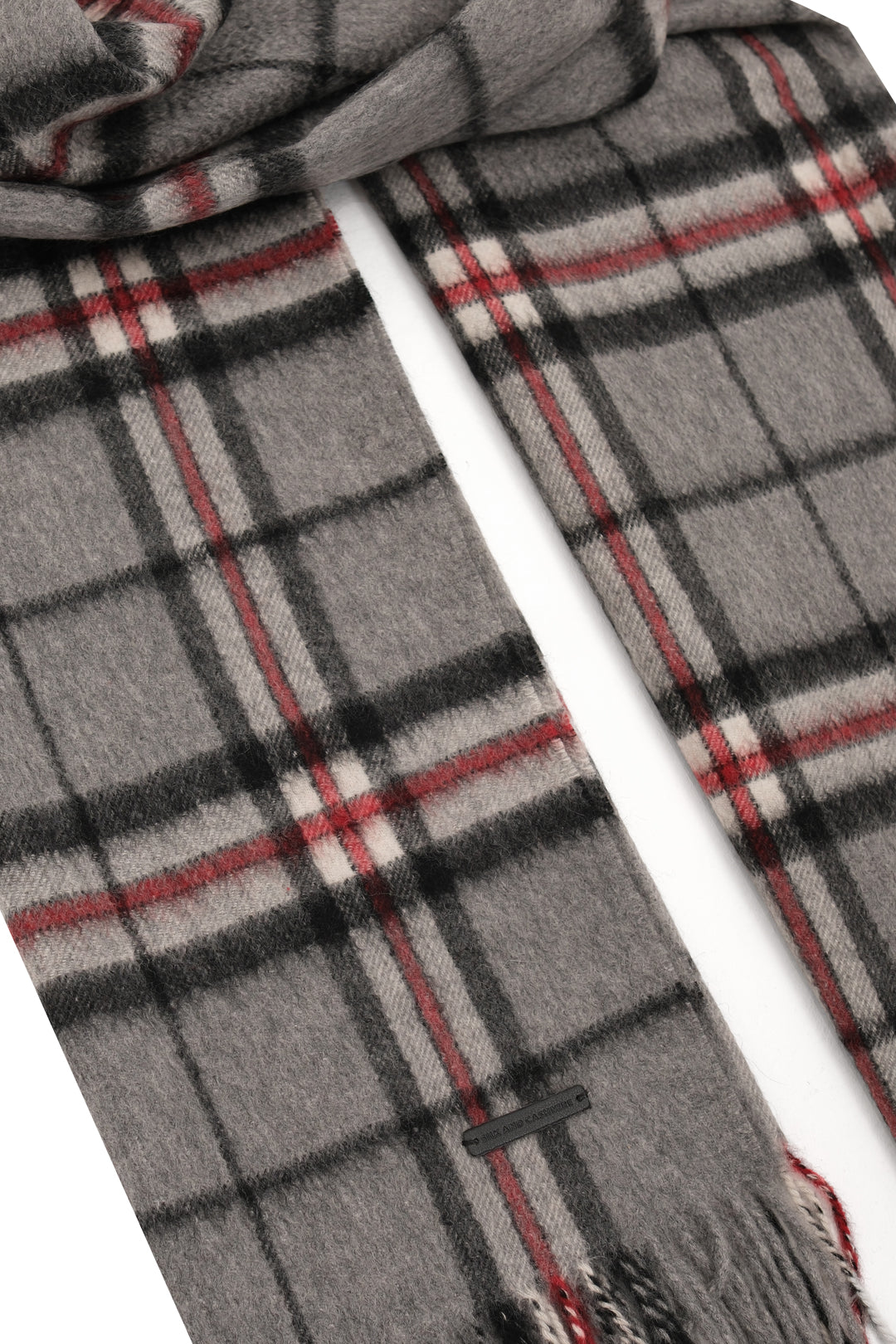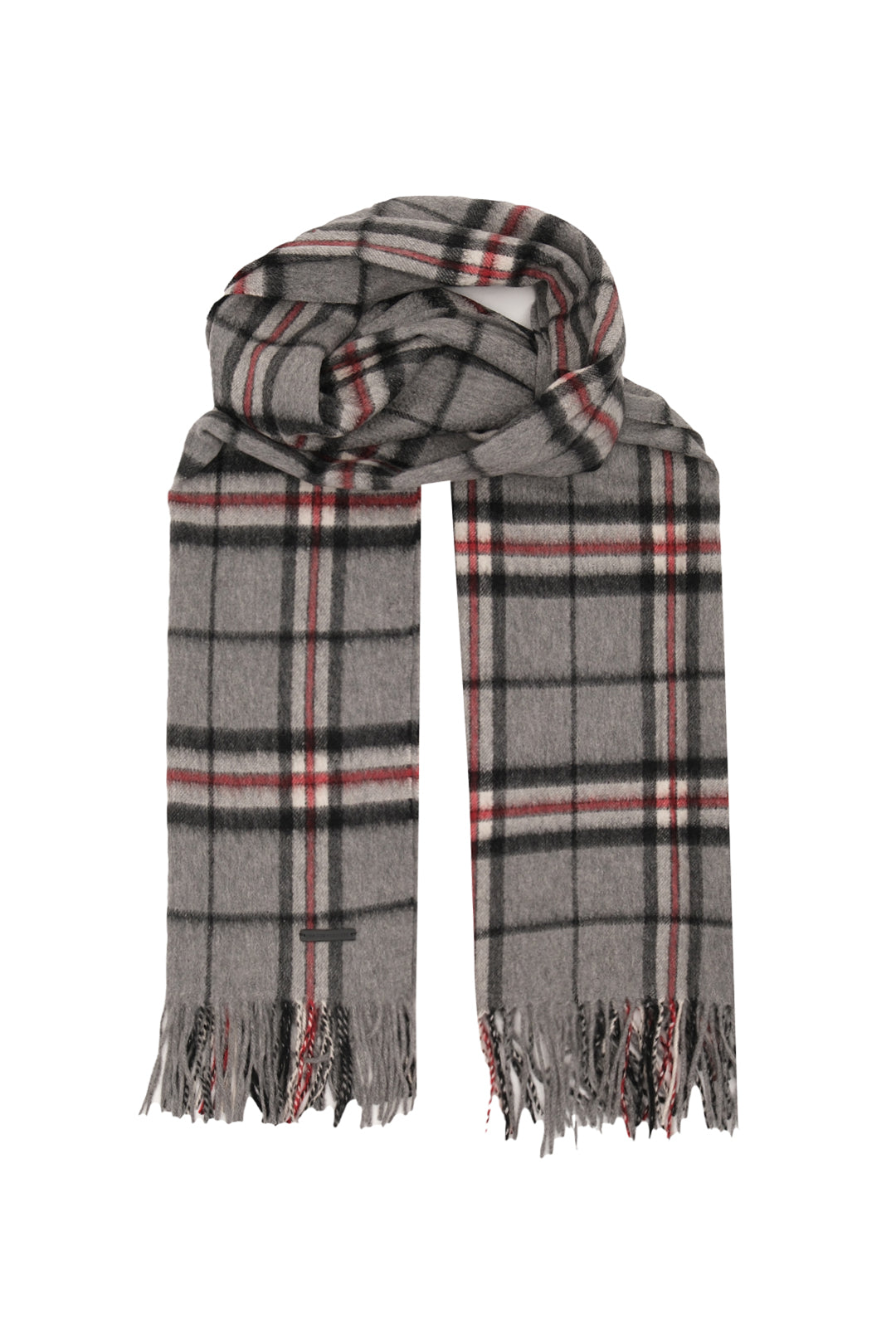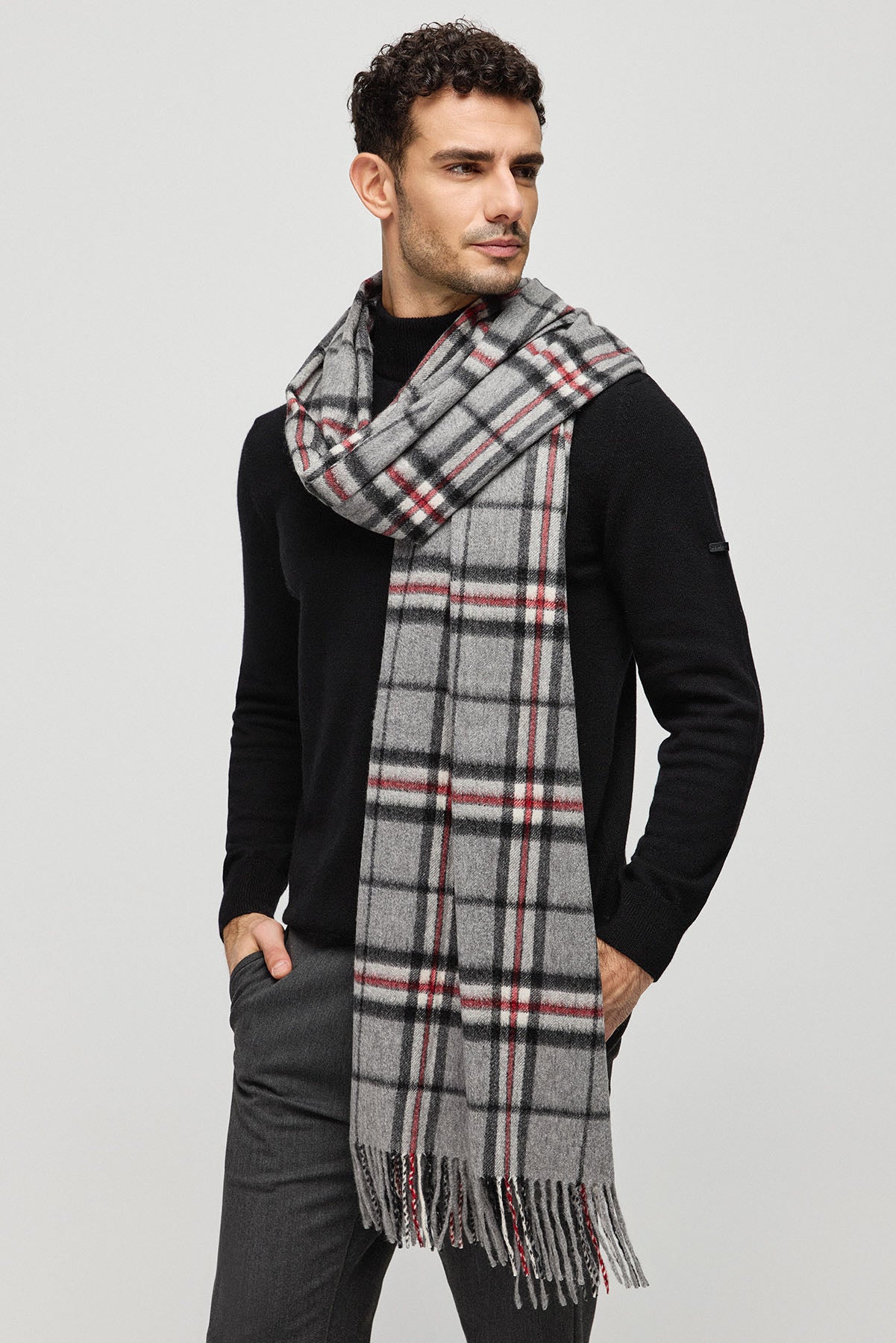 Gri Rose Saf Kaşmir Kareli Şal 74 x 194 cm