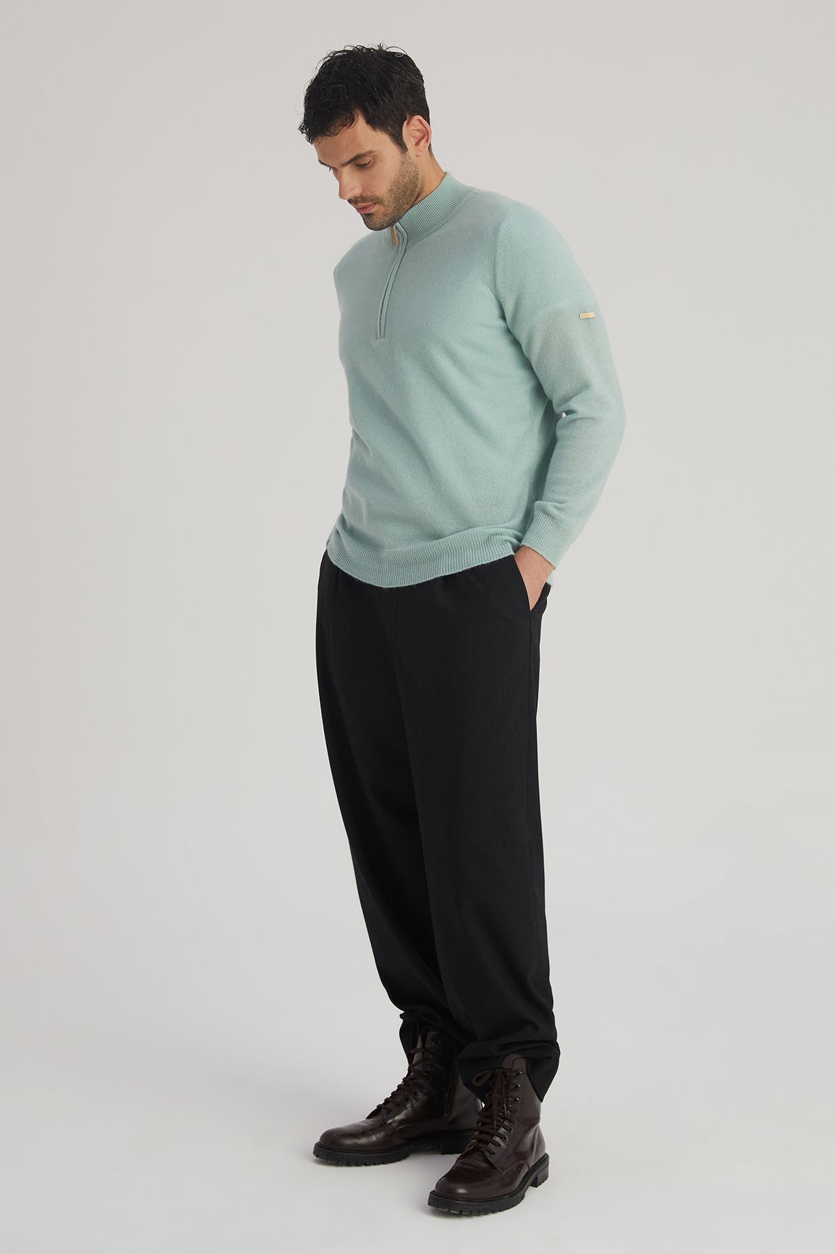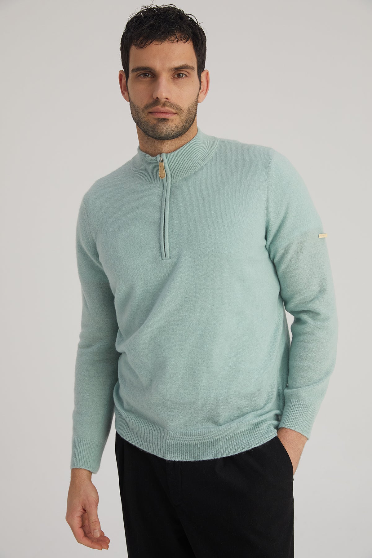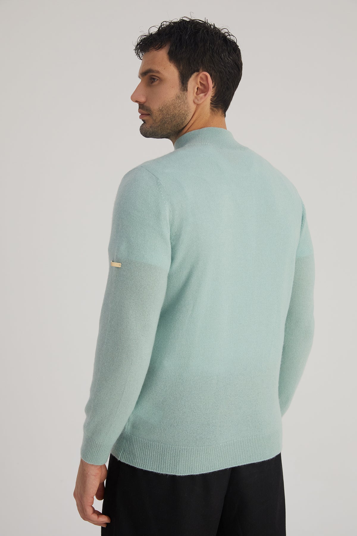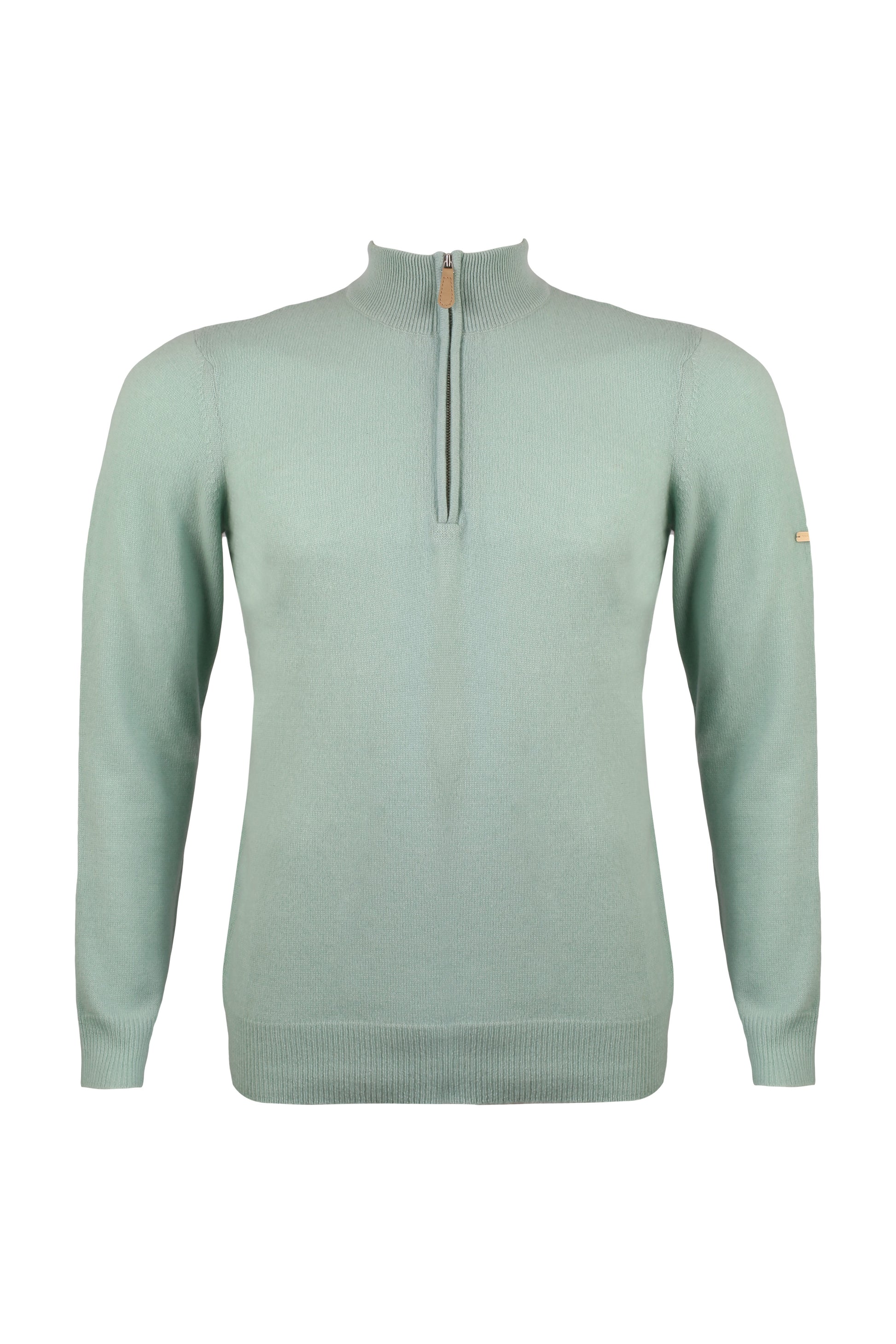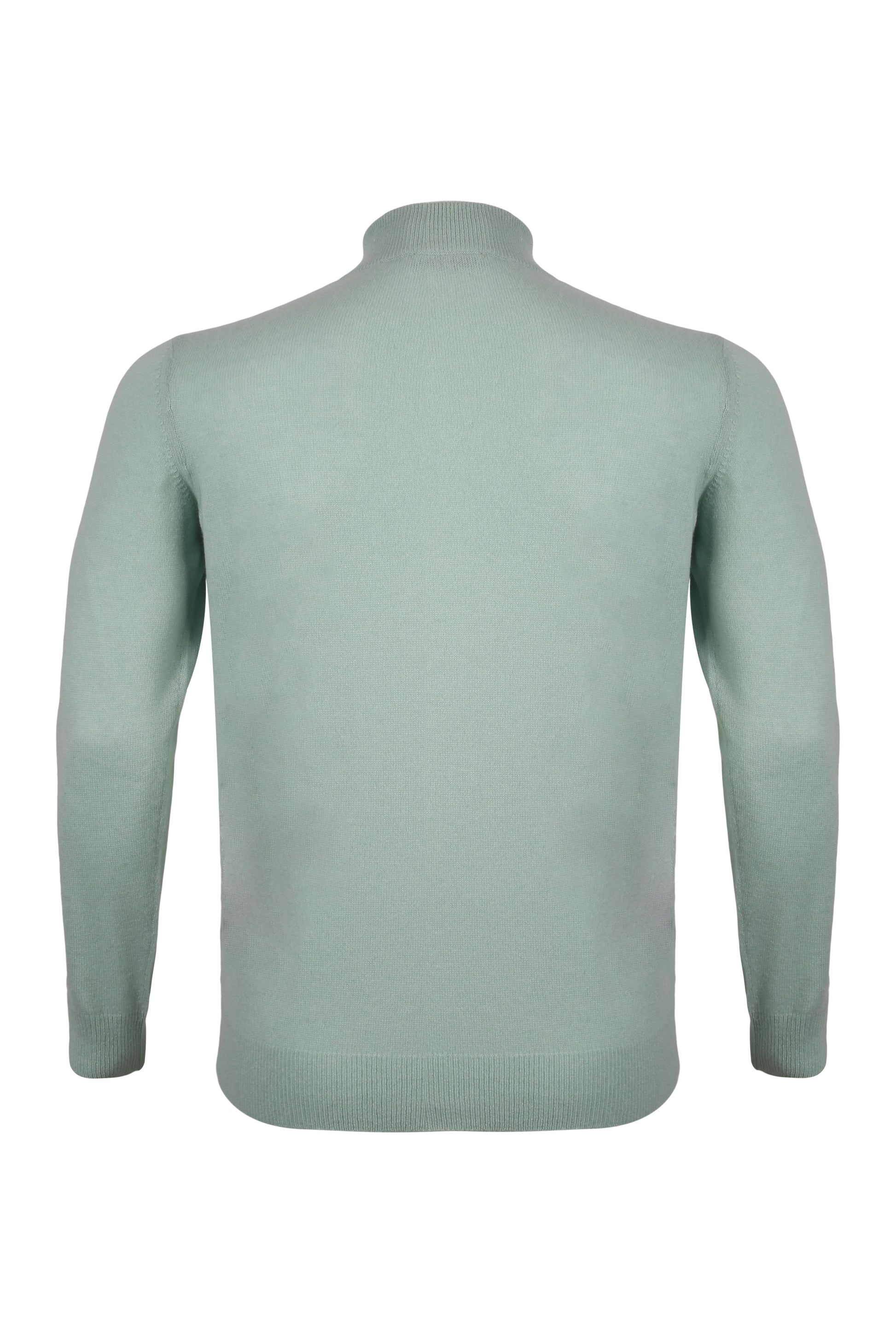 Açık Yeşil Saf Kaşmir Yüksek Yaka Fermuarlı Erkek Kazak