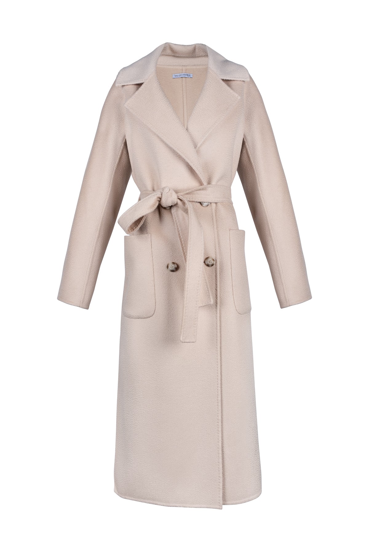 Açık Bej Meghan Yün Kaşmir Uzun Palto
