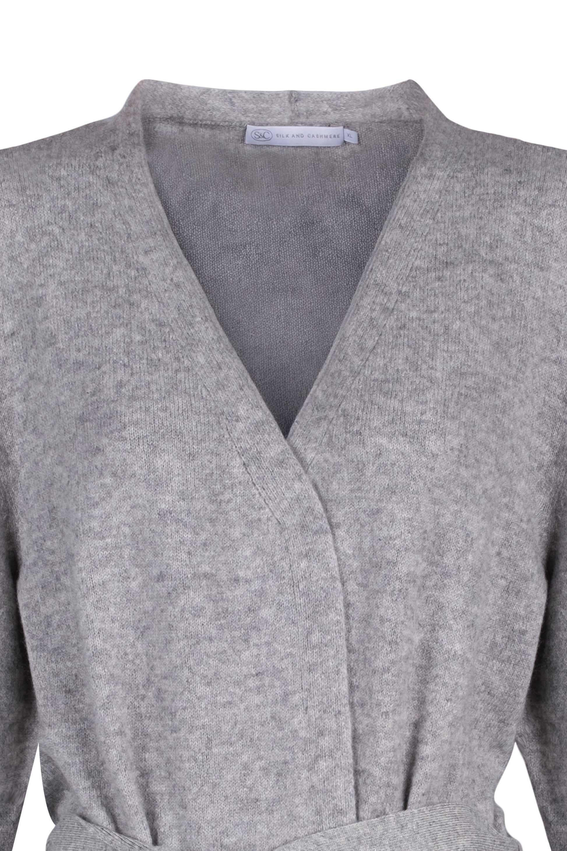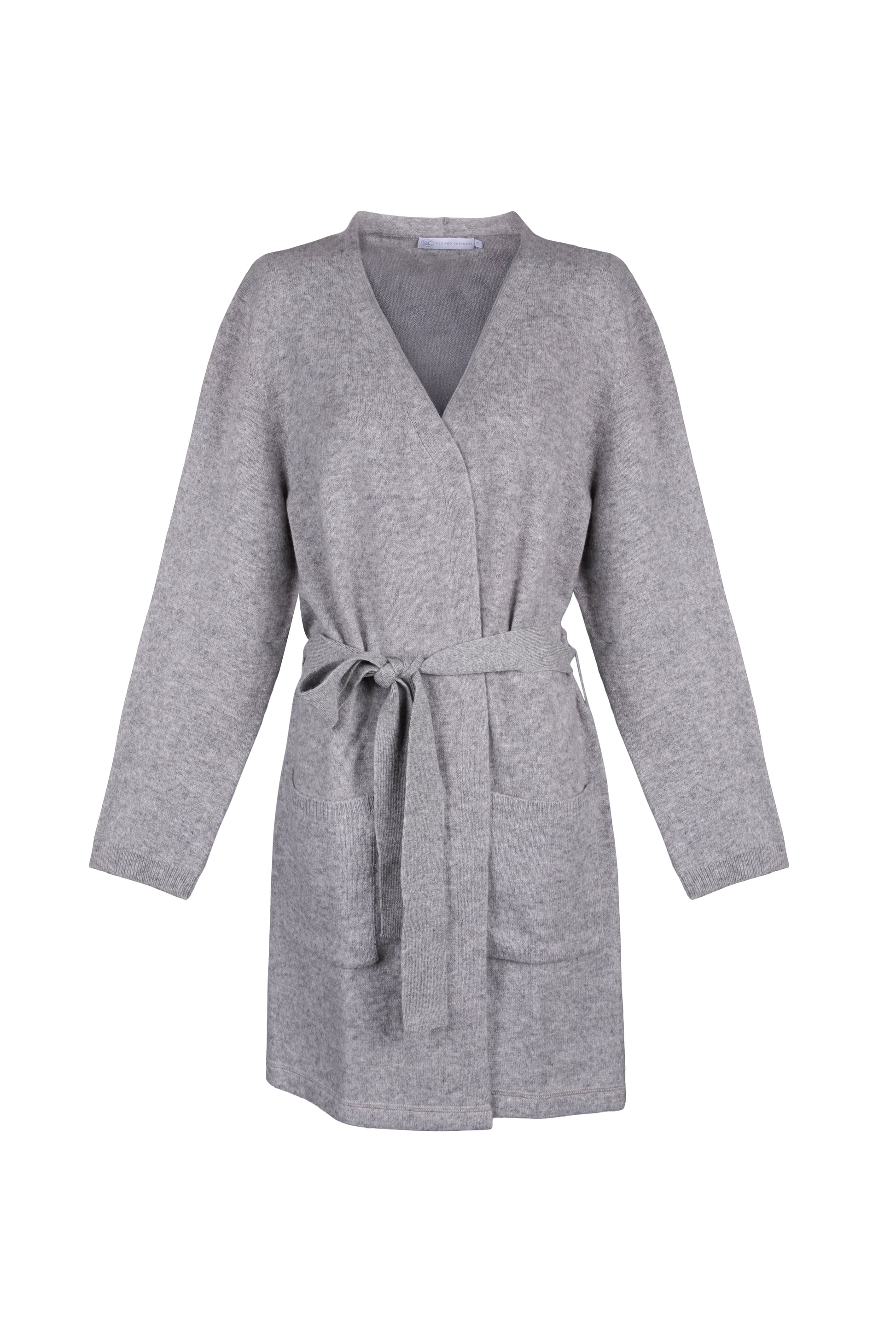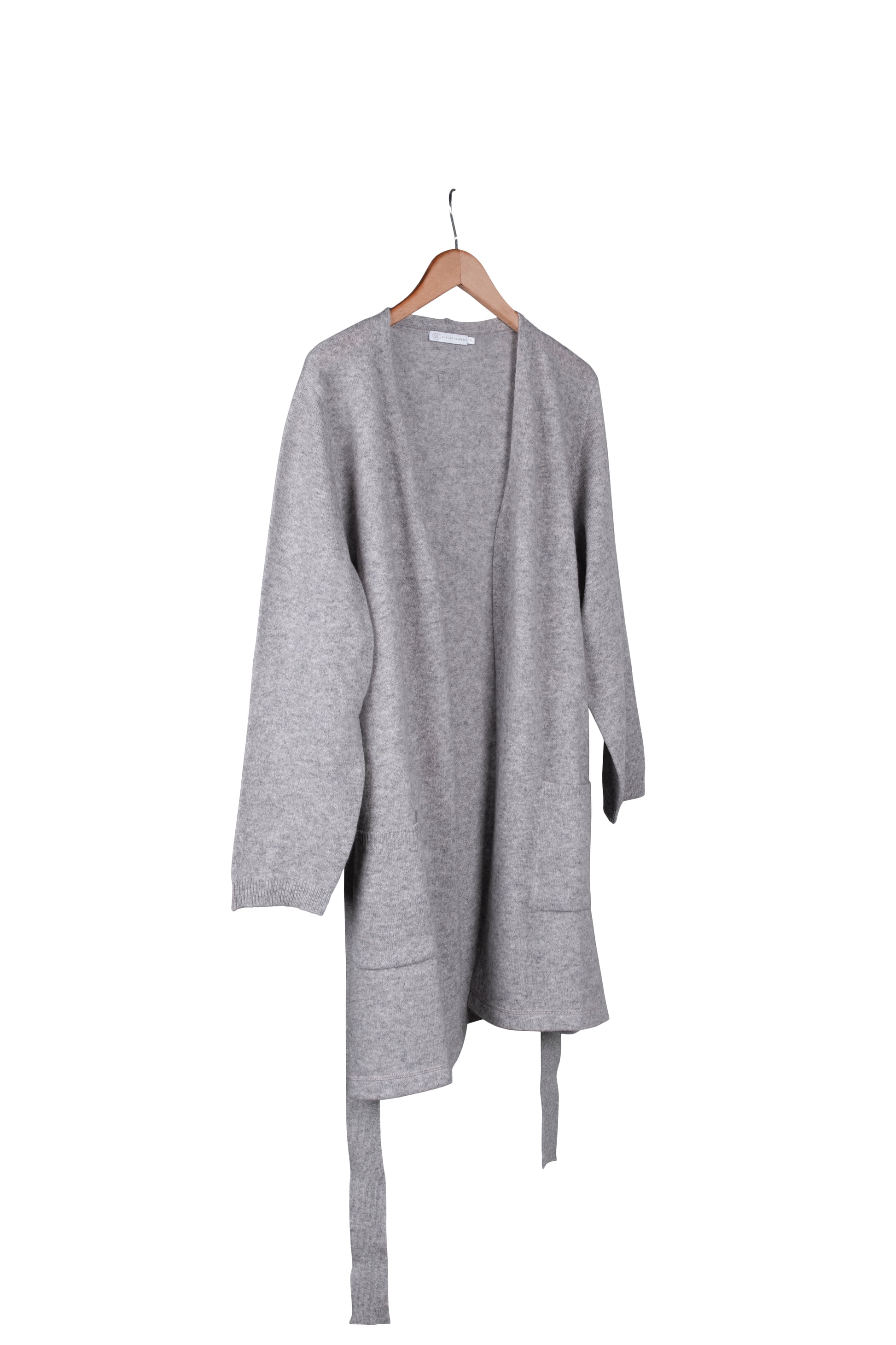 Açık Gri Lilly Saf Kaşmir Uzun Hırka