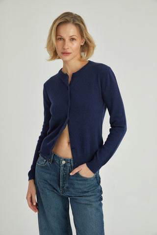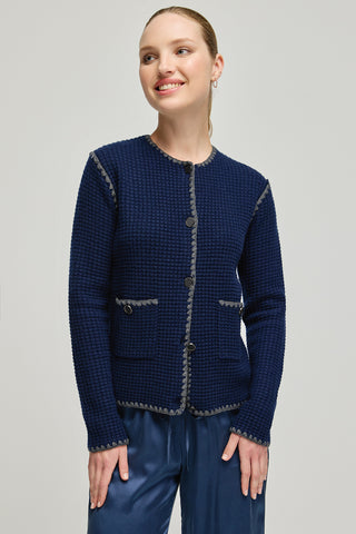 Lacivert Kaşmir Yün Giselle Yuvarlak Yaka Dokulu Hırka