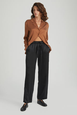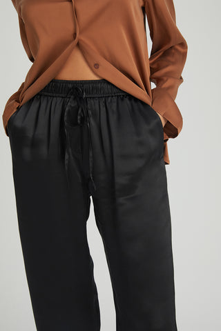 Siyah İpekli Monica Yuvarlak Yaka Uzun Kol Bluz