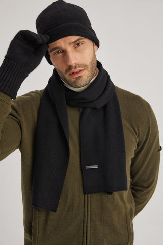 Siyah İpek ve Kaşmir Balıkçı Yaka Uzun Kollu Utku Erkek Triko