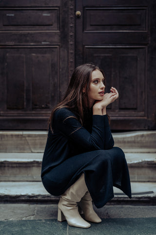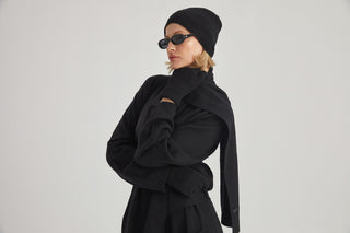 Siyah İpek Kaşmir Aleyna Yüksek Yaka Uzun Kollu Kadın Elbise