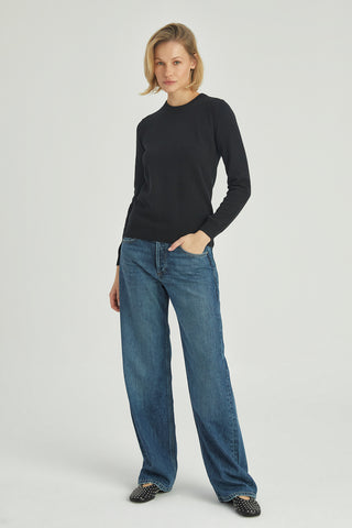 Siyah Franca Saf Kaşmir Bisiklet Yaka Kazak