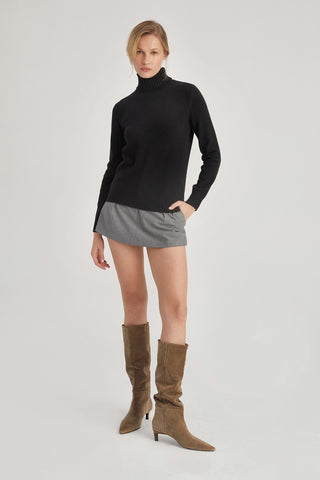 Siyah Kaşmir Yün Romy Balıkçı Yaka Yarasa Kollu Crop Kadın Kazak