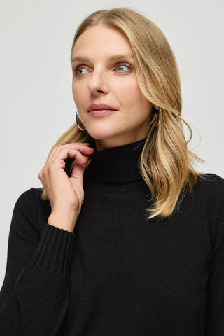 Siyah Ava Saf Kaşmir Balıkçı Yaka Uzun Kollu Kadın Kazak