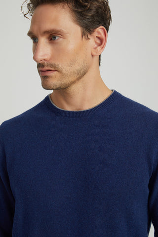 Lacivert Franca Saf Kaşmir Bisiklet Yaka Kazak
