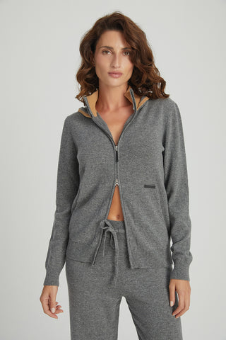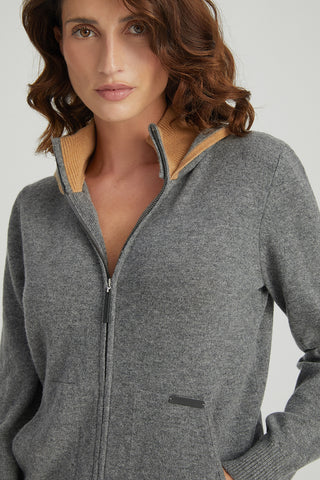 Orta Gri Melanj Laura Yün Kaşmir Yüksek Yaka Kapüşonlu Hırka