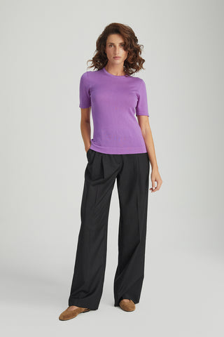 Mor Aleyna İpek ve Kaşmir Yuvarlak Yaka Kısa Kollu Kadın Triko