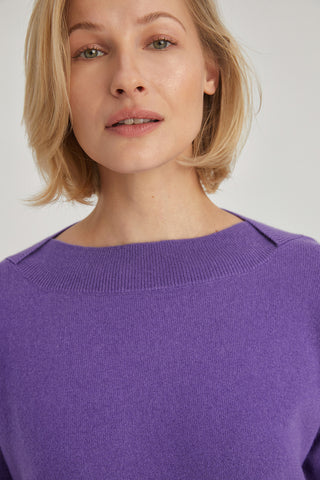 Mor Isabella Saf Kaşmir Kayık Yaka Kazak