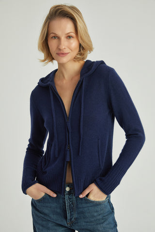 Lacivert Isabella Saf Kaşmir Kapüşonlu Hırka