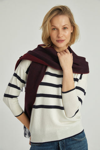 Beyaz Saf Kaşmir Isabella Derin V Yaka Kadın Kazak