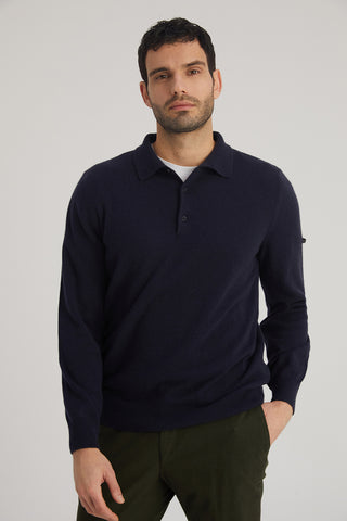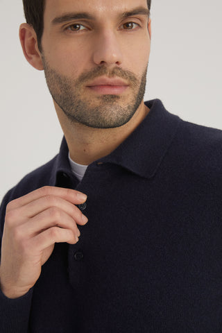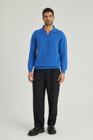 Ekru İpek ve Kaşmir Polo Yaka Uzun Kollu Utku Erkek Triko