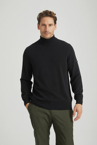 Siyah İpek ve Kaşmir Balıkçı Yaka Uzun Kollu Utku Erkek Triko