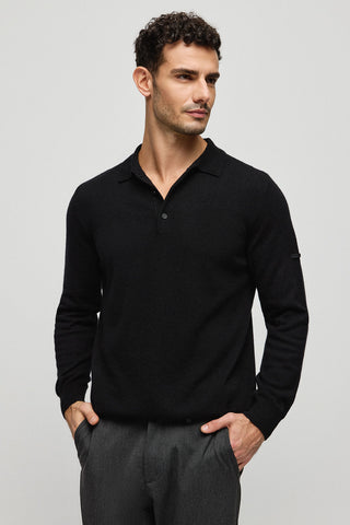 Siyah İpek Kaşmir Utku Uzun Kollu Erkek Polo