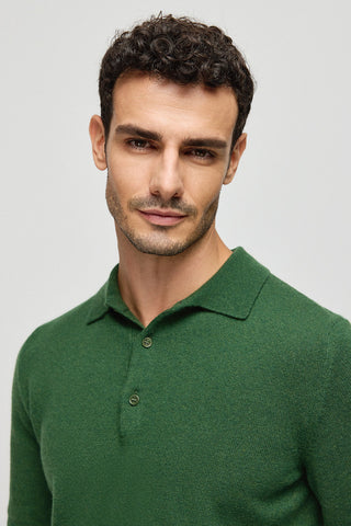 Yeşil Saf Kaşmir Erkek Polo Kazak