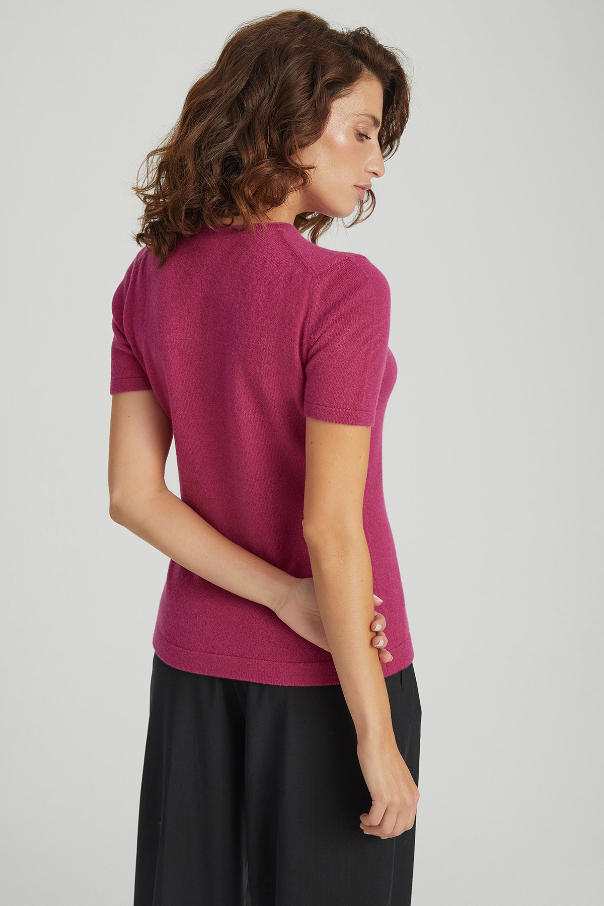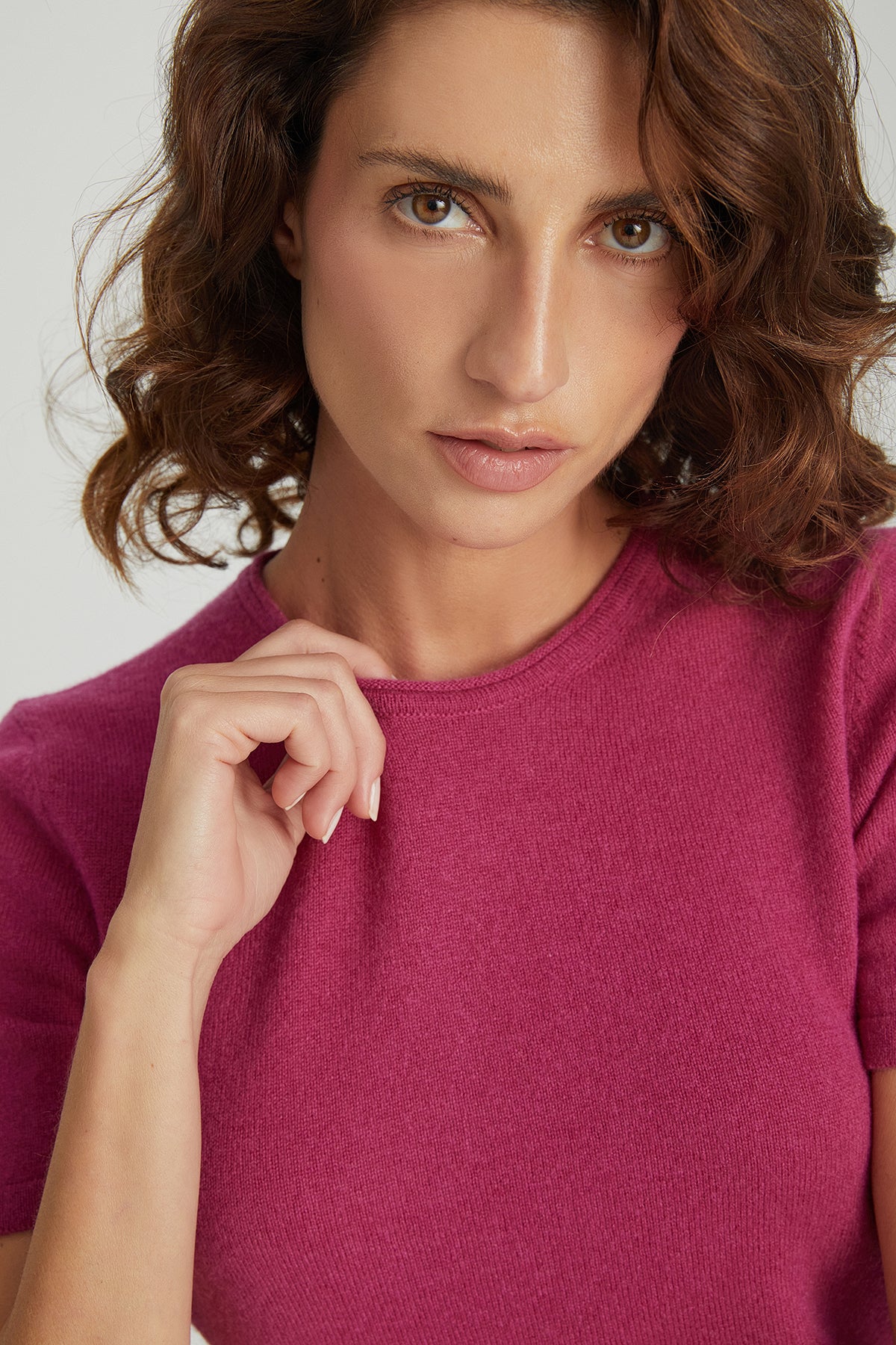 Koyu Pembe Lilly Saf Kaşmir Bisiklet Yaka Tişört