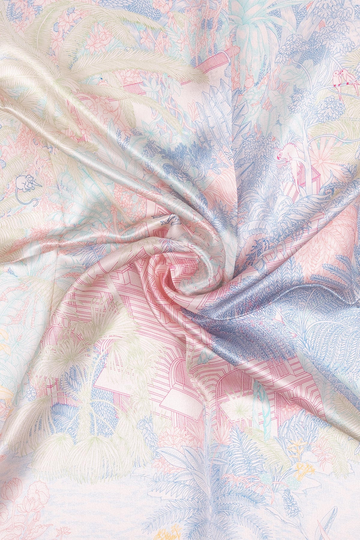 Pembe Lara Saf İpek Baskılı Eşarp 90x90 cm