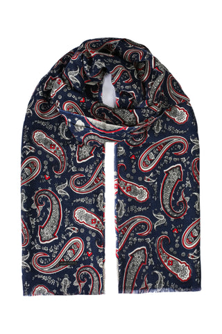 Lacivert Jas ipekli Desenli Şal 70x180 cm