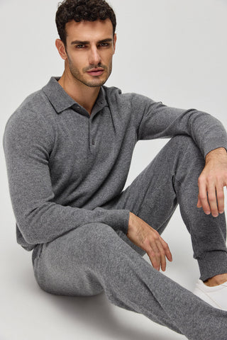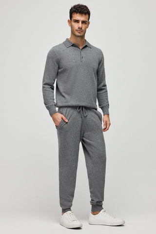 Orta Gri Melanj Kaşmir Yün Kaşmir ve Yün Geri Dönüştürülmüş Reloved Erkek Triko Eşofman Altı