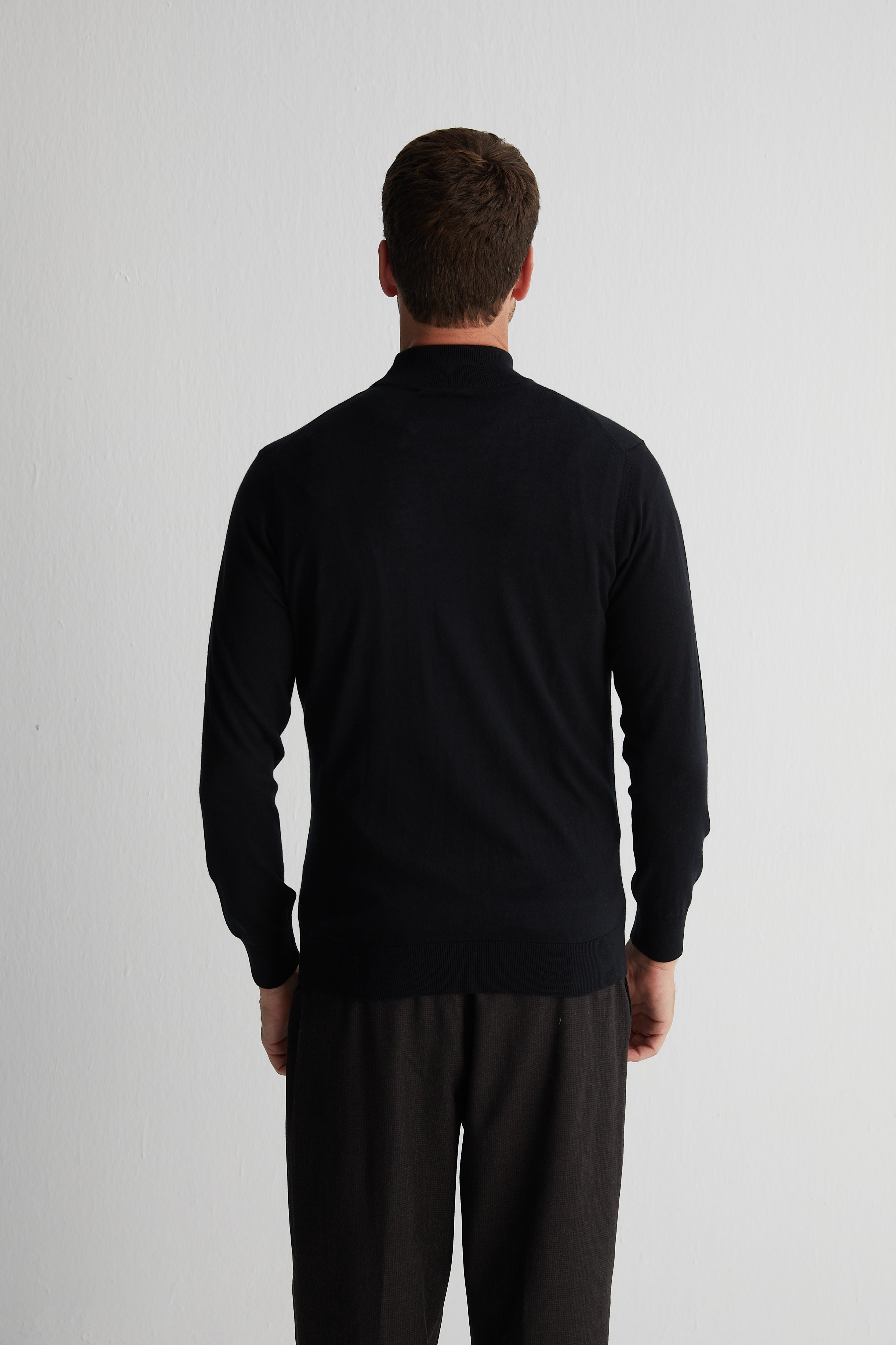 Siyah Paul İpek Kaşmir Yarım Balıkçı Triko