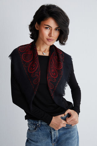 Kırmızı Lacivert Rose Saf Kaşmir Çizgili Fular Bandana 85x30x30 cm