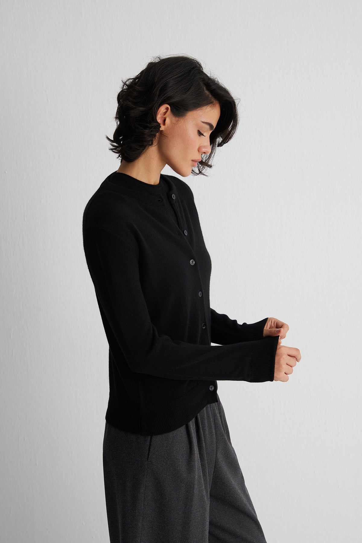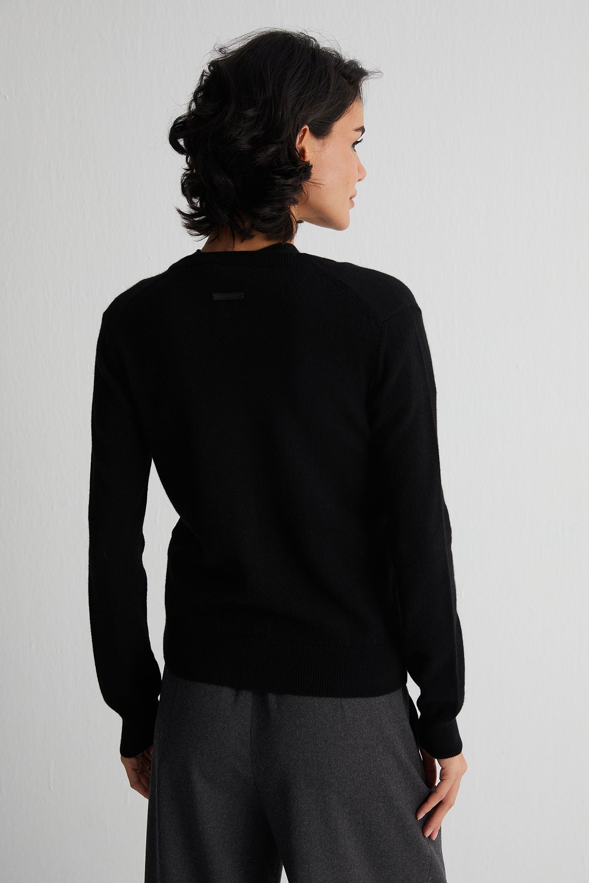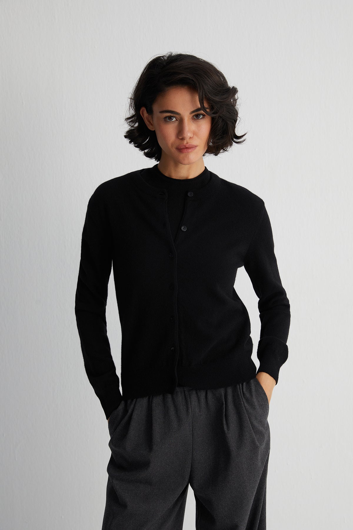 Siyah Lilly Saf Kaşmir Bisiklet Yaka Hırka