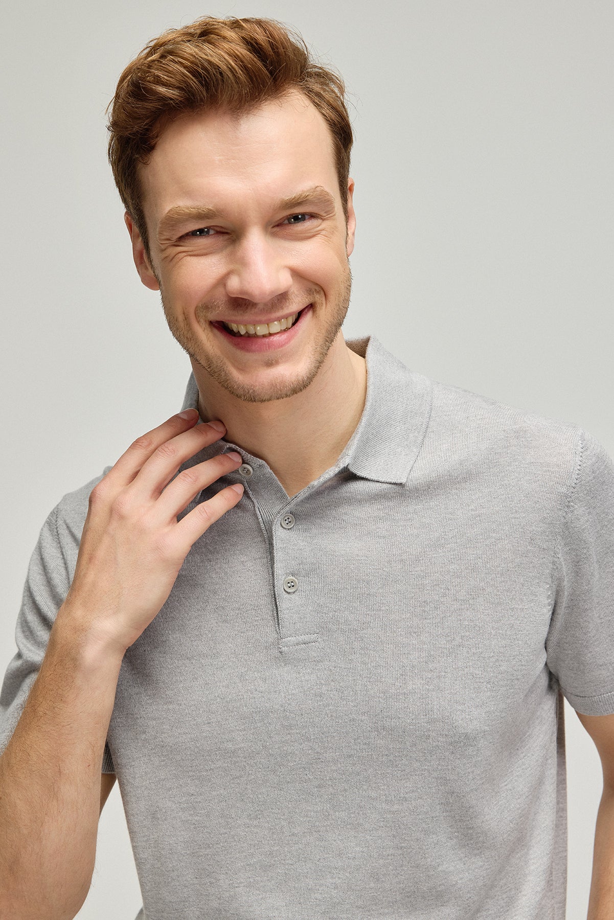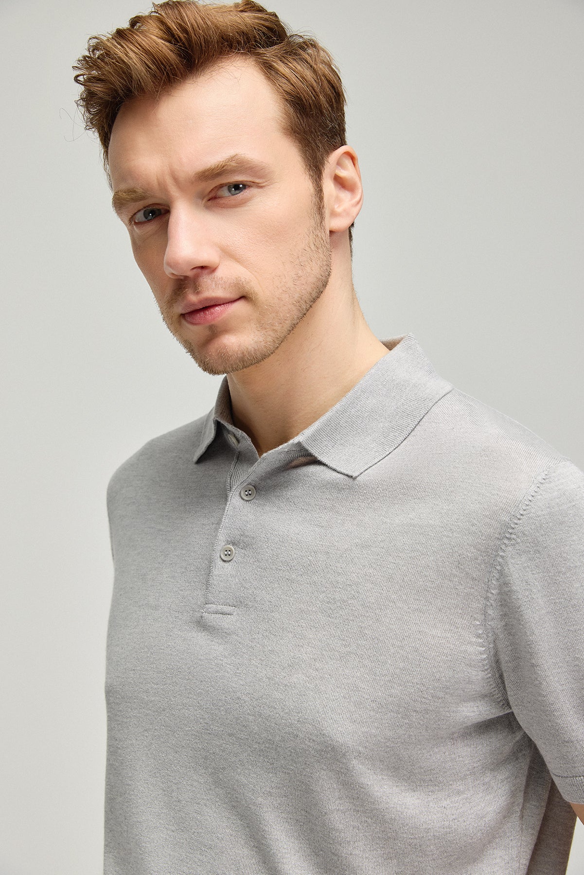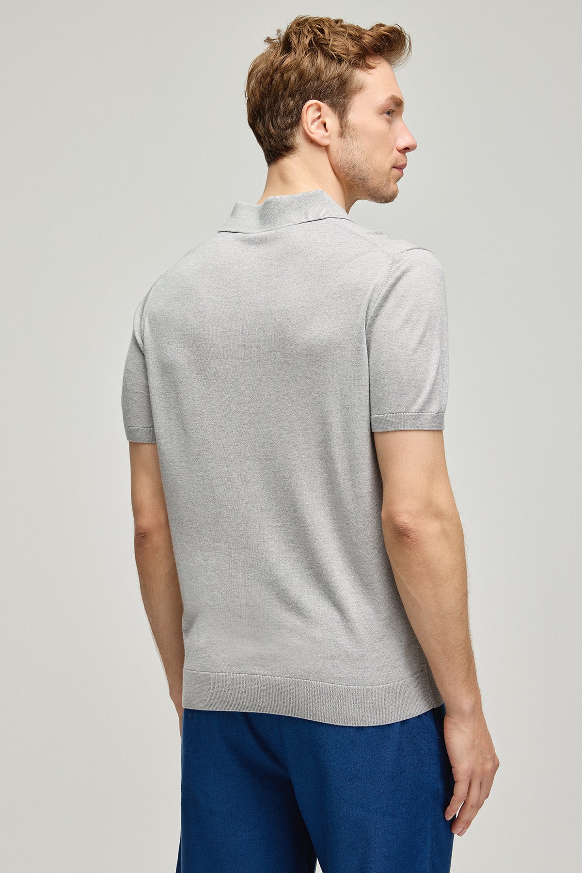 Açık Gri İpek Kaşmir Utku Kısa Kollu Erkek Triko Polo