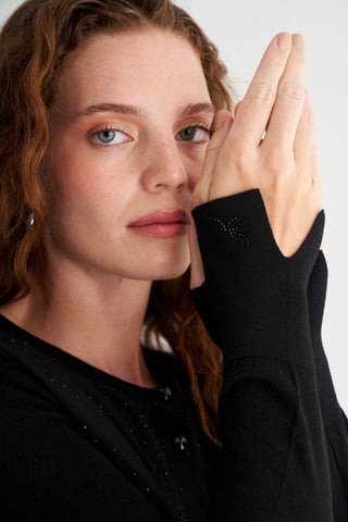 Siyah Nature İpekli Taş Süslemeli Hırka