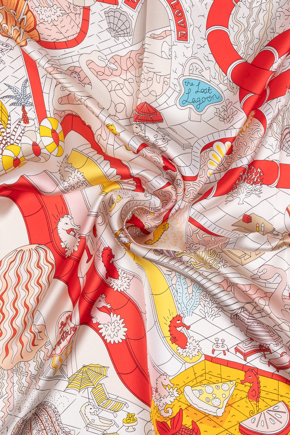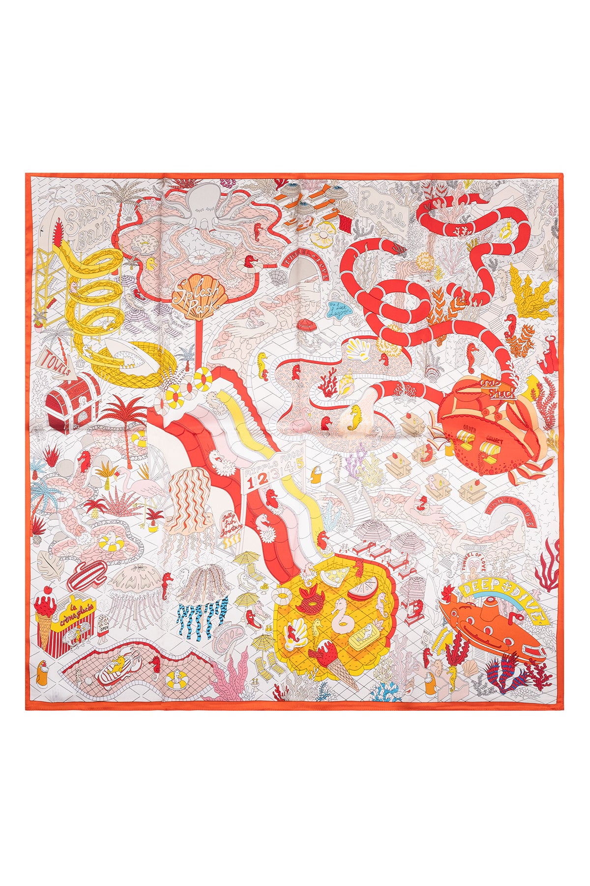 Turuncu Beyaz Lara Saf İpek Baskılı Eşarp 90x90 cm
