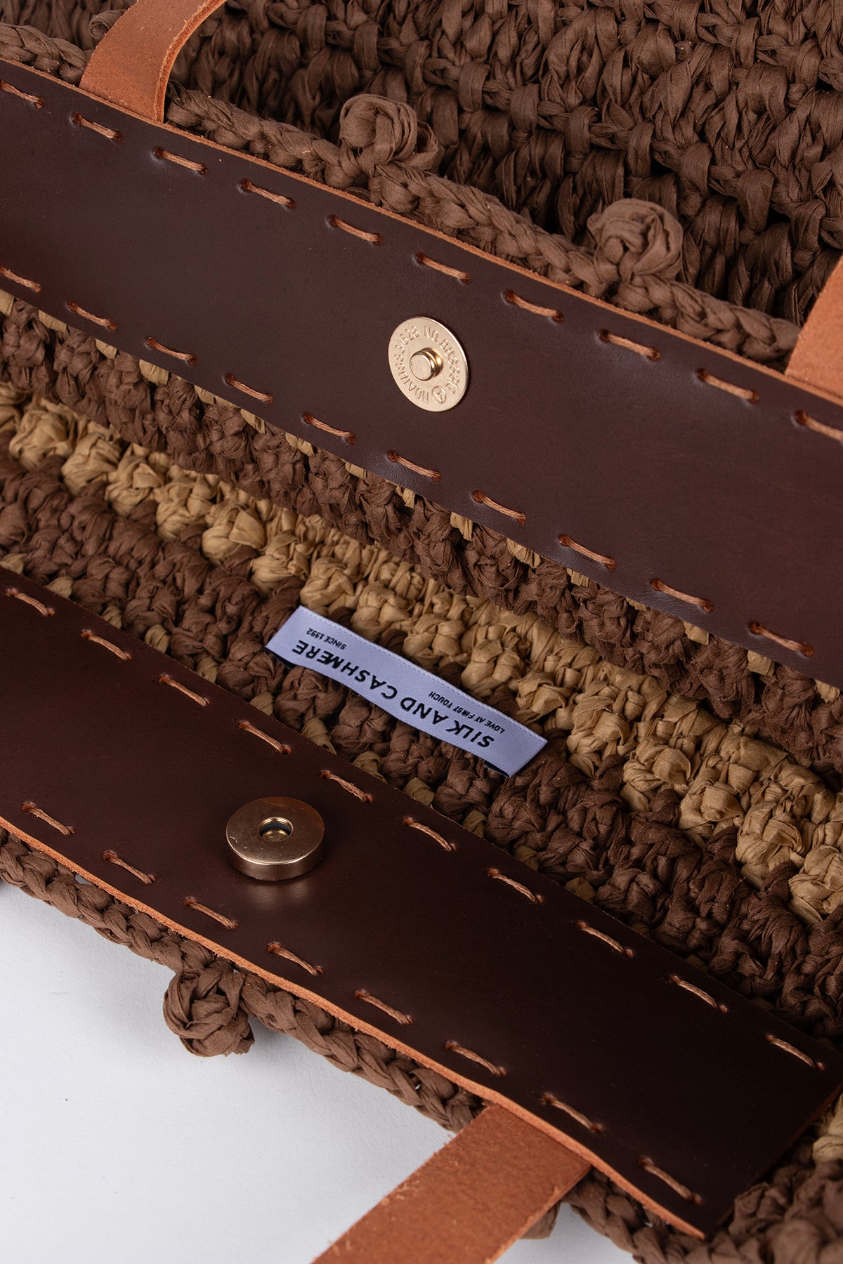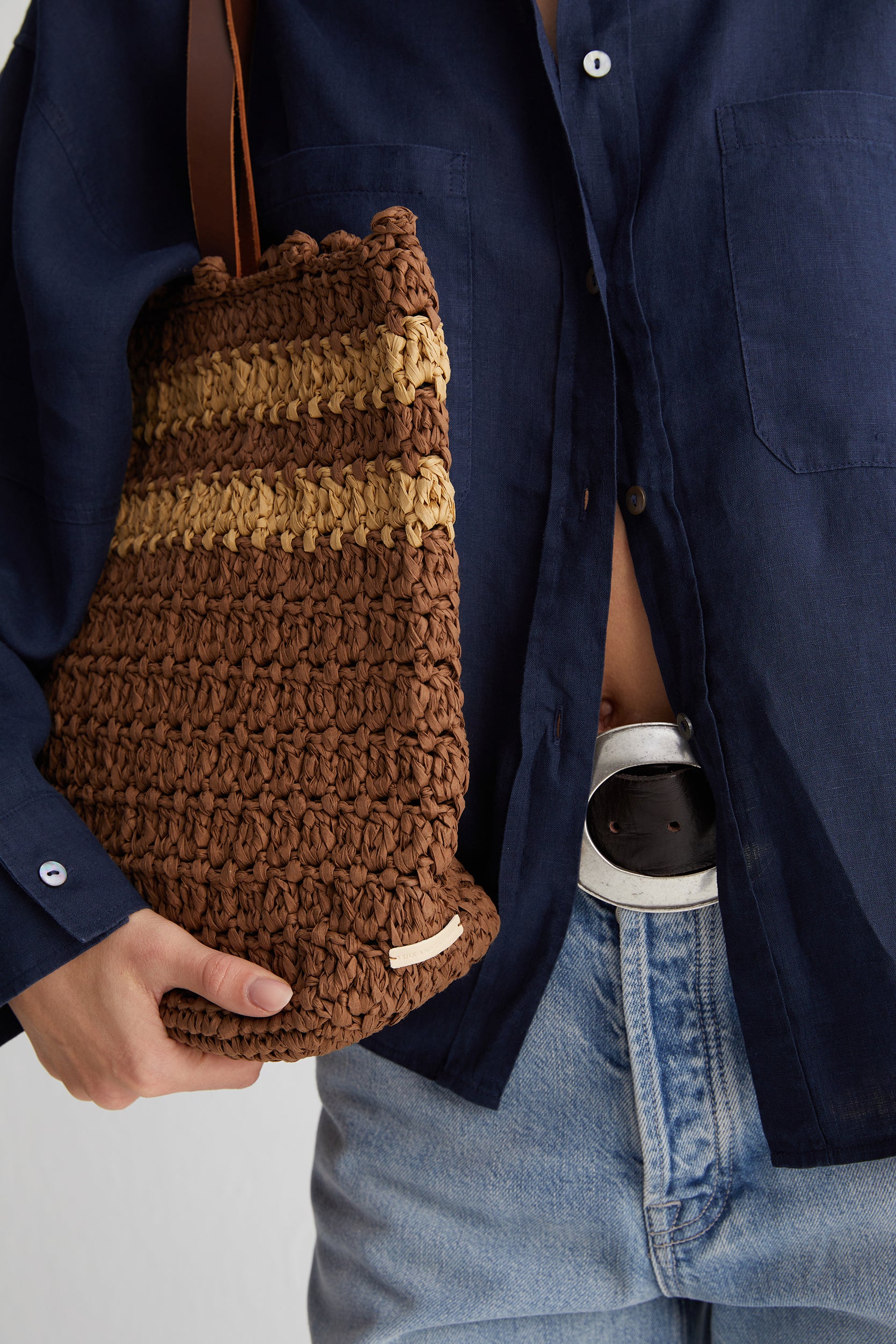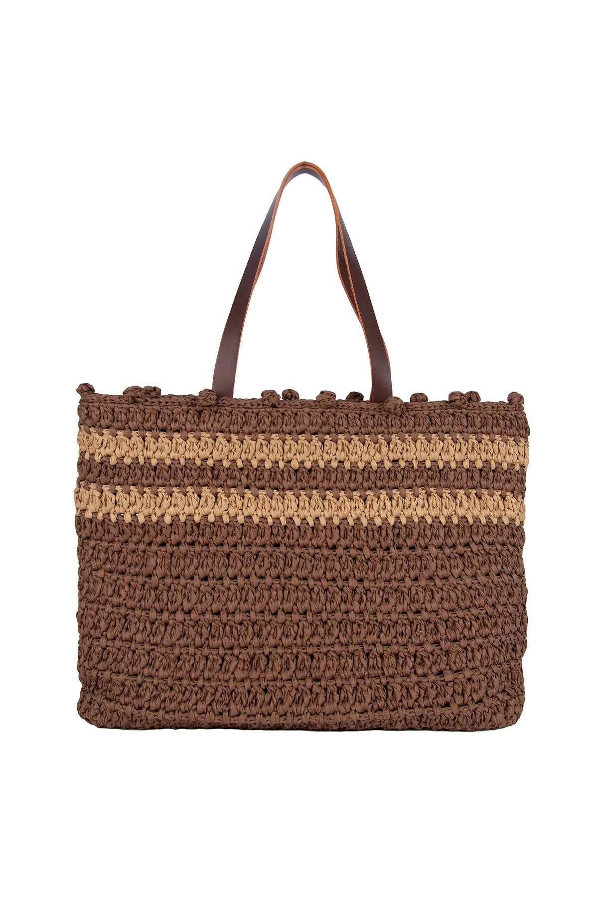 Kahverengi Nina Renkli Çizgili Rafya Çanta 42x31x11cm
