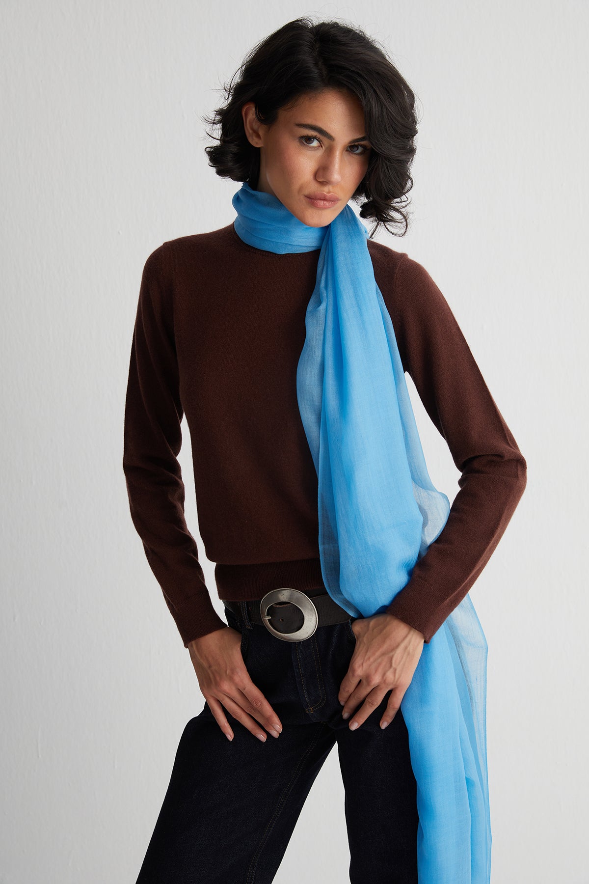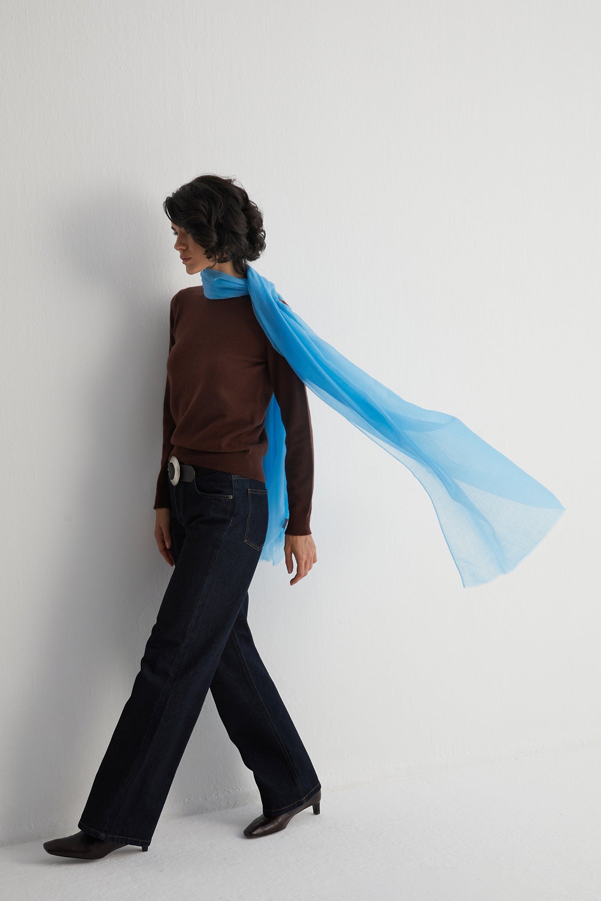 Mavi Larissa Saf Kaşmir Şal 100x230 cm