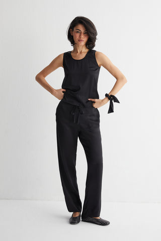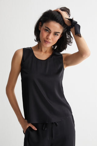 Siyah Nature Saf İpek Taş Süslemeli Yuvarlak Yaka Kısa Kollu Bluz