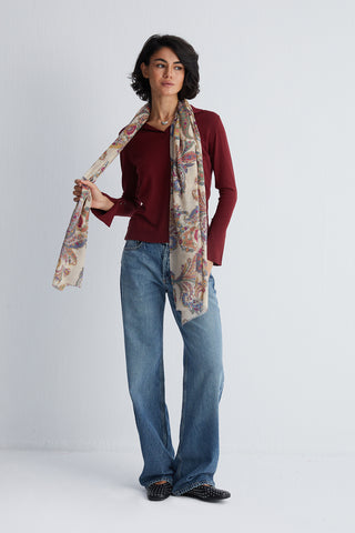 Ekru Pamuk Modal Juno Düğmesiz Uzun Kollu Uzun Hırka