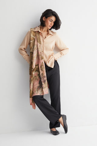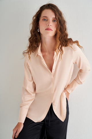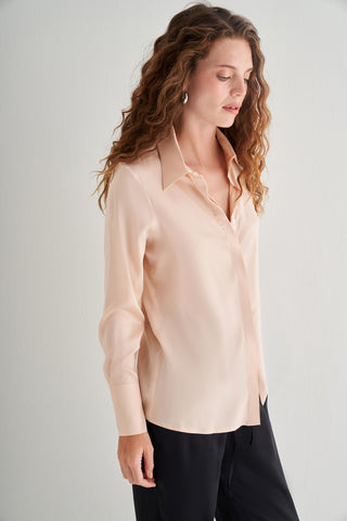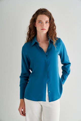 Yeşil Saf İpek Audrey Uzun Kollu Gömlek