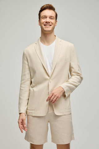 Bej Keten Kate V Yaka Kısa Kollu Elbise