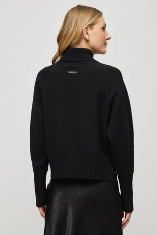Siyah Kaşmir Yün Romy Balıkçı Yaka Yarasa Kollu Crop Kadın Kazak