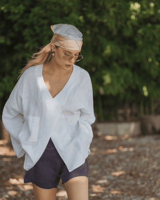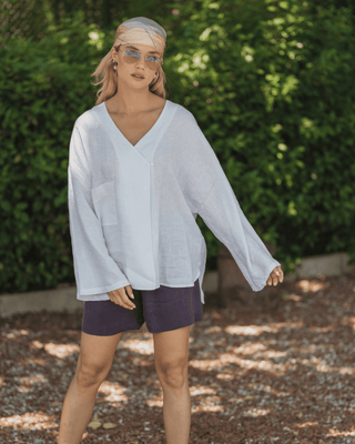 Beyaz Keten Kate V Yaka Uzun Kollu Bluz