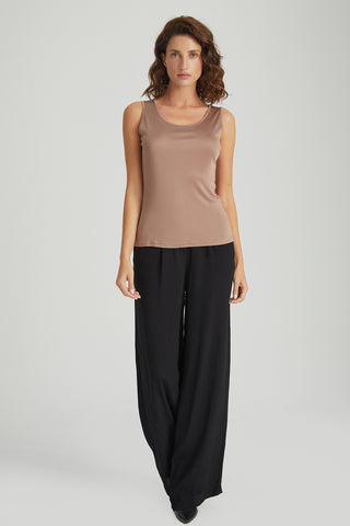 Ekru İpek Pamuk Diana Kolsuz Triko Üst