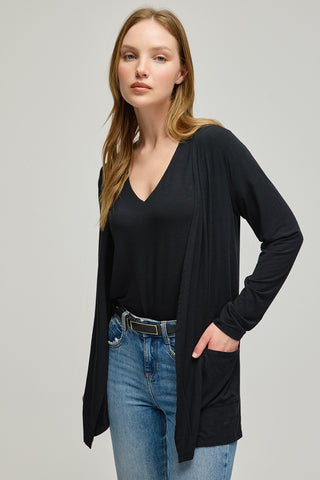 Siyah Modal Tracy Rahat Kesim Kadın Örme Hırka