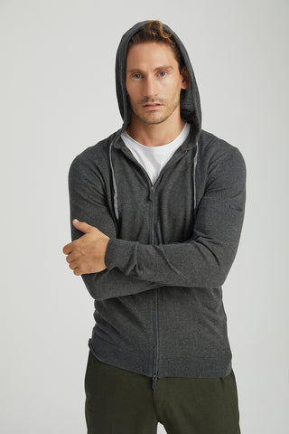 Antrasit İpek Kaşmir Utku Uzun Kollu Erkek Kapüşonlu Hırka