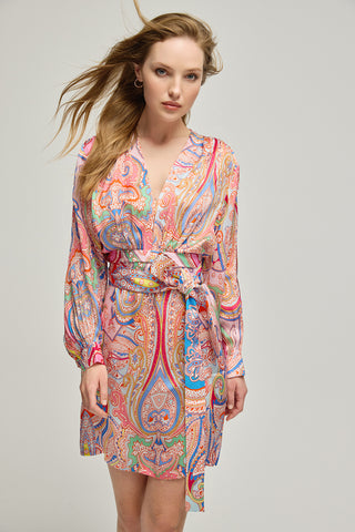 Gül Kurusu Jas Cupro V Yaka Uzun Kollu Desenli Elbise