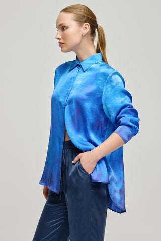 Lacivert Nature İpek Desenli Uzun Kollu Gömlek