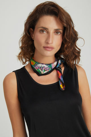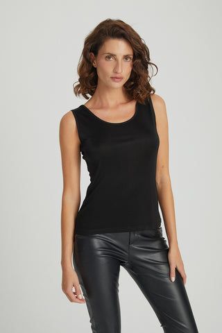 Siyah Marina İpekli Yuvarlak Yaka Kolsuz T-Shirt