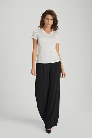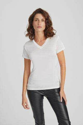 Beyaz Marina İpekli V Yaka Kısa Kollu T-Shirt