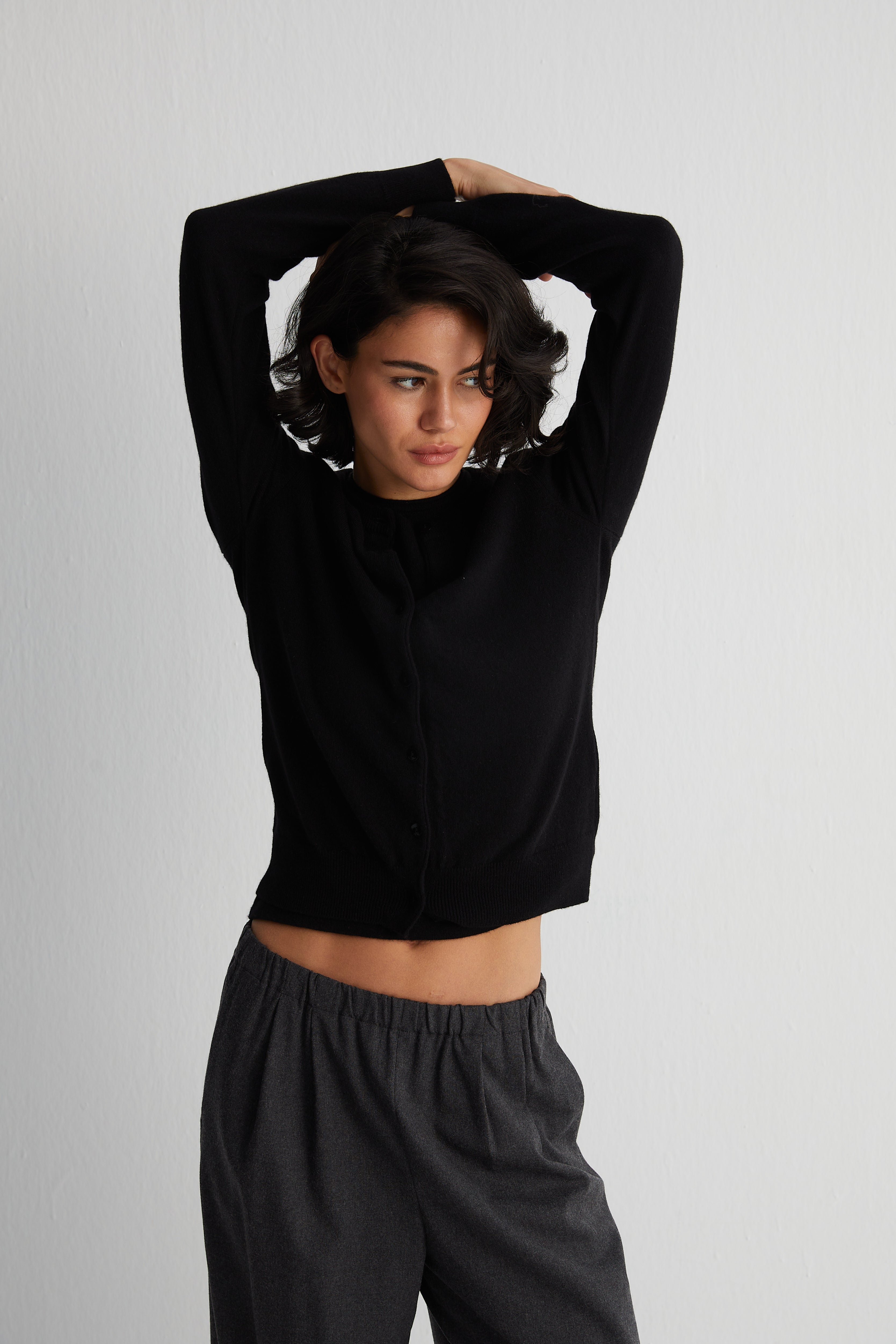 Siyah Lilly Saf Kaşmir Bisiklet Yaka Hırka