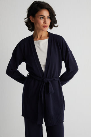 Ekru Pamuk Modal Juno Düğmesiz Uzun Kollu Uzun Hırka