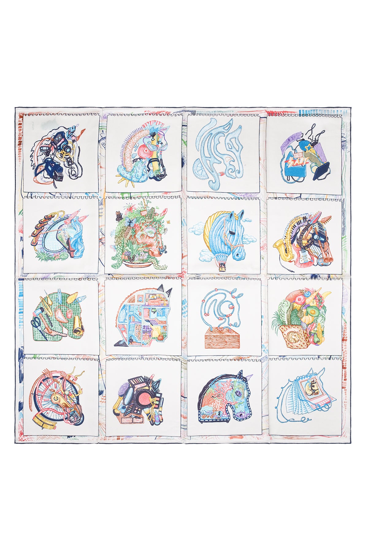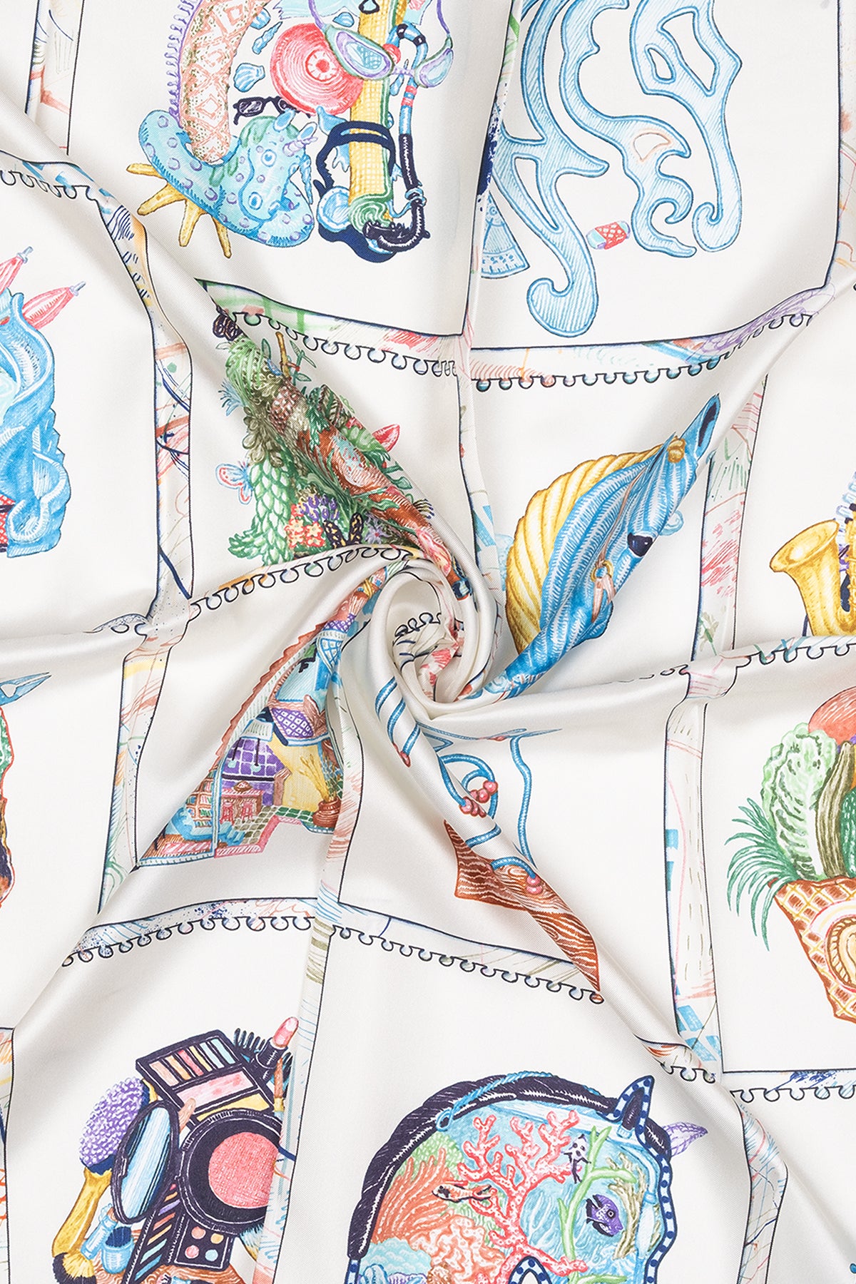 Beyaz Lara Saf İpek Baskılı Eşarp 90x90 cm